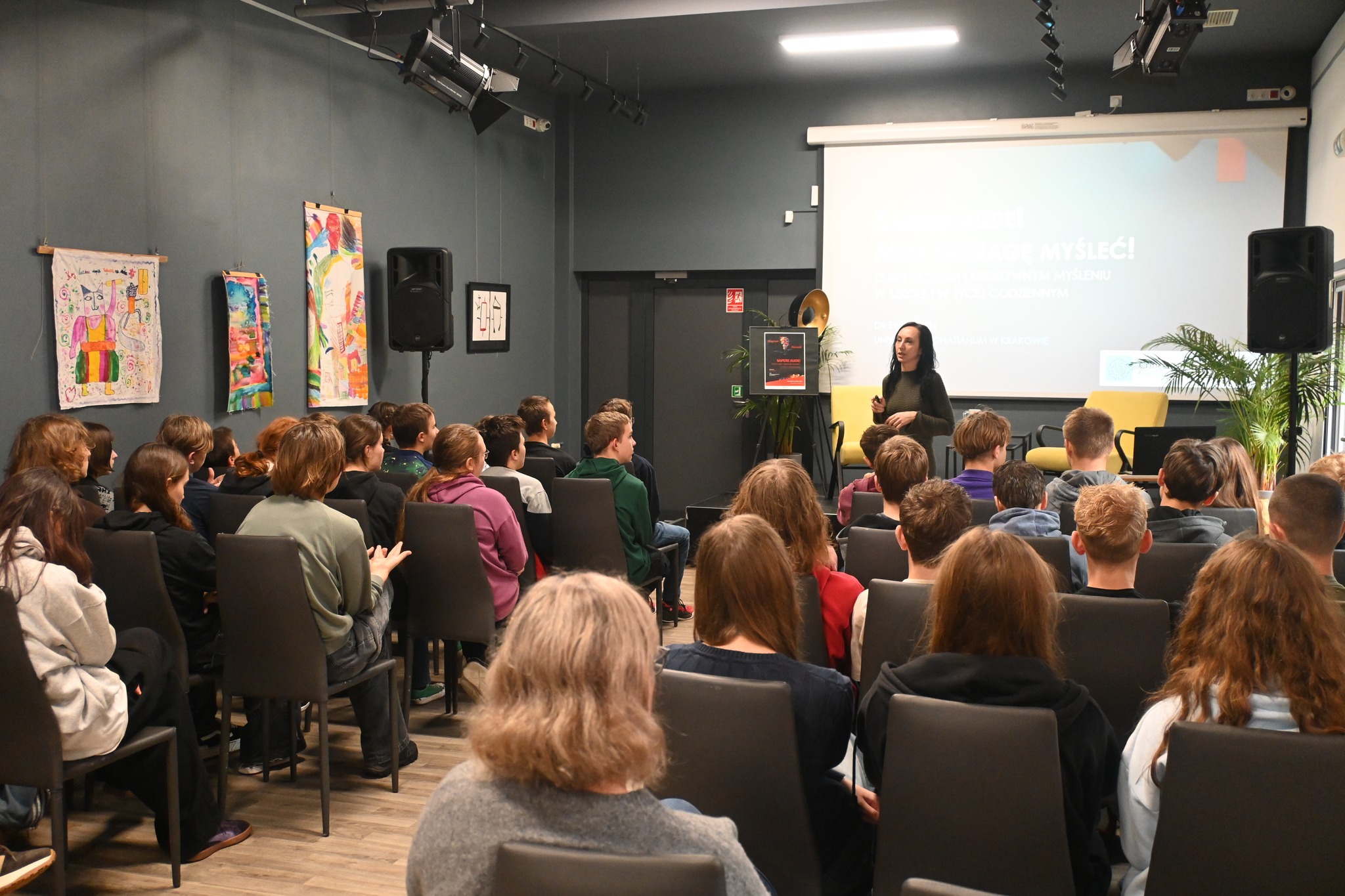 24.10 dr Ewa Odoj gościła w Miejskiej Bibliotece Publicznej w Gliwicach. W ramach projektu “Hogwart czy Harvard” finansowanego przez Ministerstwo Kultury i Dziedzictwa Narodowego prowadziła warsztaty dla uczniów ósmych klas szkół podstawowych pt. “Sapere aude! Miej odwagę myśleć! O krytycznym i kreatywnym myśleniu w szkole i życiu codziennym”.