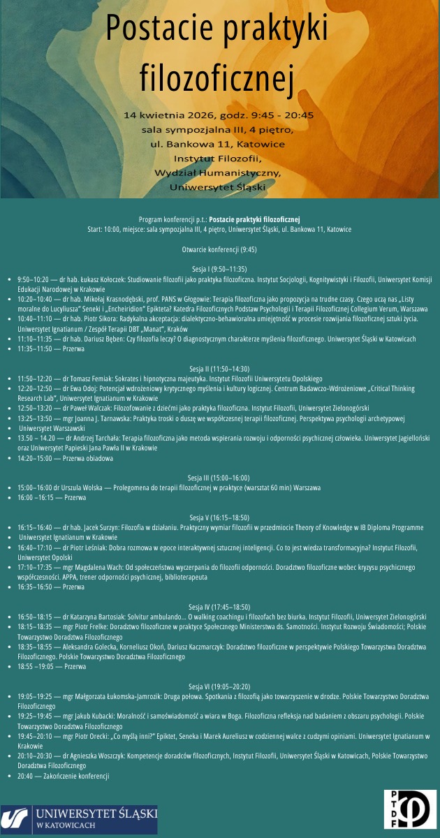 14.04 dr Ewa Odoj miała okazję opowiedzieć o projekcie realizowanym przez CTRL, a finansowanym przez Ministerstwo Nauki i Szkolnictwa Wyższego, na Uniwersytecie Śląskim w Katowicach podczas konferencji “Postacie praktyki filozoficznej”.
